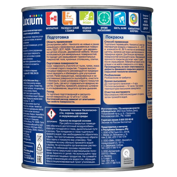 Краска Luxium Мебель и Дерево BW матовая белая 0,75 л — это удачное решение для тех, кто мечтает о свежем облике интерьера и долговечности окрашенных поверхностей. Её особая формула создана специально для работы с мебелью и изделиями из дерева, позволяя не только преобразить их внешний вид, но и надёжно защитить от износа. Матовый белый цвет придаёт покрытиям мягкую бархатистую глубину и идеально подходит для современных интерьеров в скандинавском, прованском или минималистичном стиле. Такая краска помогает скрыть мелкие неровности и подчёркивает естественную структуру древесины, создавая утончённый декоративный эффект. Благодаря высокой укрывистости уже первый слой ложится ровно, а последующие обеспечивают идеальную насыщенность оттенка. Она не имеет резкого запаха, быстро высыхает, устойчива к истиранию и легко моется, что делает её отличным выбором для мебели, дверей, стеллажей, подоконников и декоративных элементов. Экономичный объём 0,75 л оптимален для небольших проектов: реставрации комода, окрашивания стола или обновления полок. Простота нанесения кистью или валиком позволяет справиться даже новичкам, а полученный результат порадует профессиональным качеством. С этой краской можно создавать уютную атмосферу, где каждая деталь выглядит свежо, стильно и гармонично. Выбирая краску Luxium Мебель и Дерево BW матовая белая 0,75 л, вы получаете долговечное покрытие, сохраняющее красоту и прочность мебели на долгие годы. Превратите ваши идеи в реальность и подарите любимым предметам вторую жизнь — с Luxium это легко и вдохновляюще!