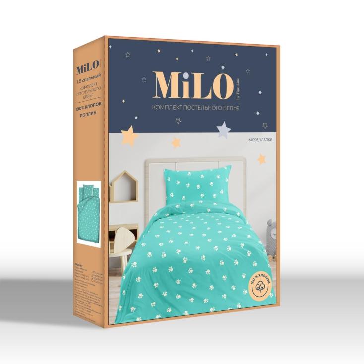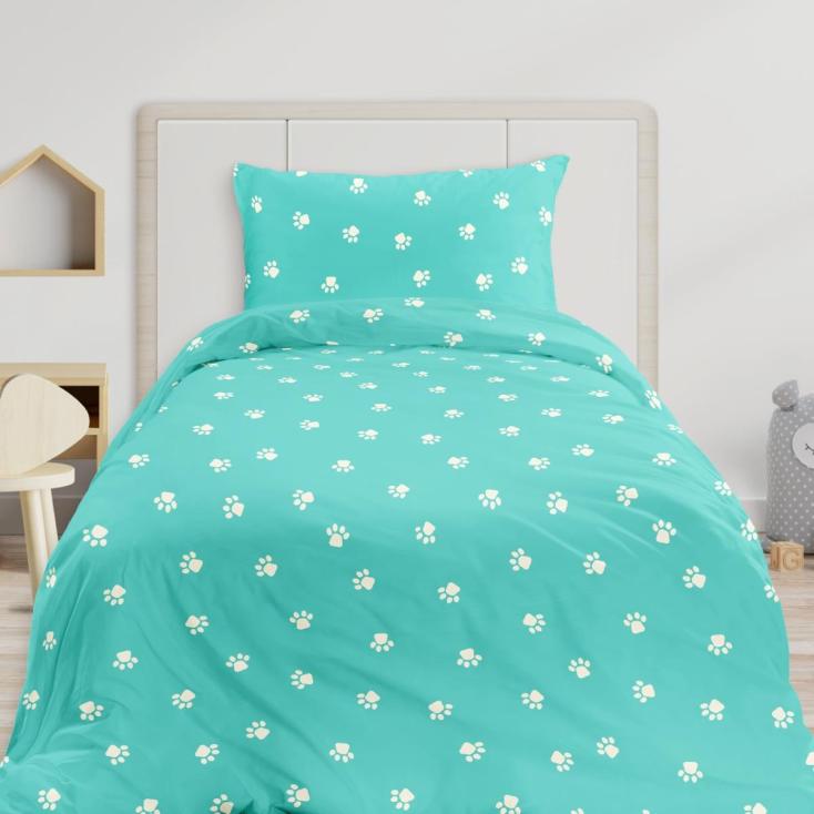 Белье постельное 1,5 сп детский поплин Milo by Fine Line Лапки на бирюзовом 64008-1 50х70 см-1