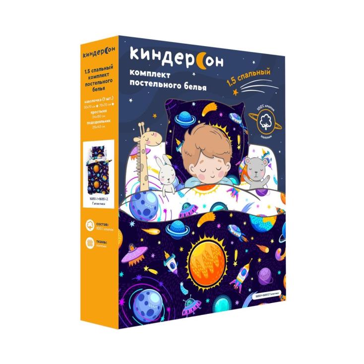 Белье постельное 1,5 сп детский поплин КиндерСон Галактика 16851-1/16851-2 50х70 см-1