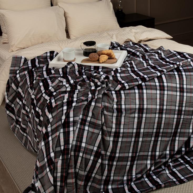 Плед фланель TF FN F137 a2022 Шотландка 200x220 см серый