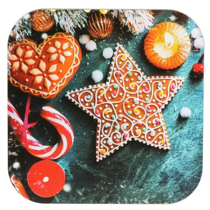 Подставка под горячее Новогодняя звезда-пряник 18х18 см — это праздничный аксессуар, который добавит вашему дому атмосферу тепла и радости. Яркое изображение пряничной звезды с новогодними акцентами создаёт настроение праздника и уюта. Подставка защищает поверхность стола от воздействия горячих предметов: на неё можно поставить кастрюлю, чайник или кружку. Она устойчива к высоким температурам, долговечна и удобна в использовании. Подставка легко очищается и не требует особого ухода. Компактные размеры позволяют хранить её в любом удобном месте. Такое изделие станет незаменимым элементом зимней сервировки и отличным подарком для близких. Подставка Новогодняя звезда-пряник соединяет практичность и красоту, превращая повседневный процесс в праздничное событие.