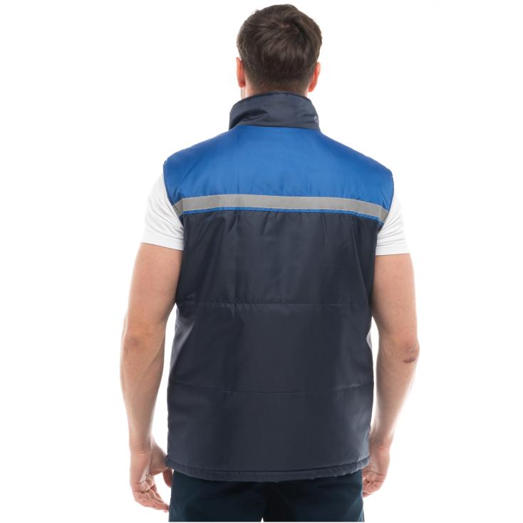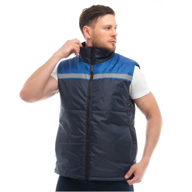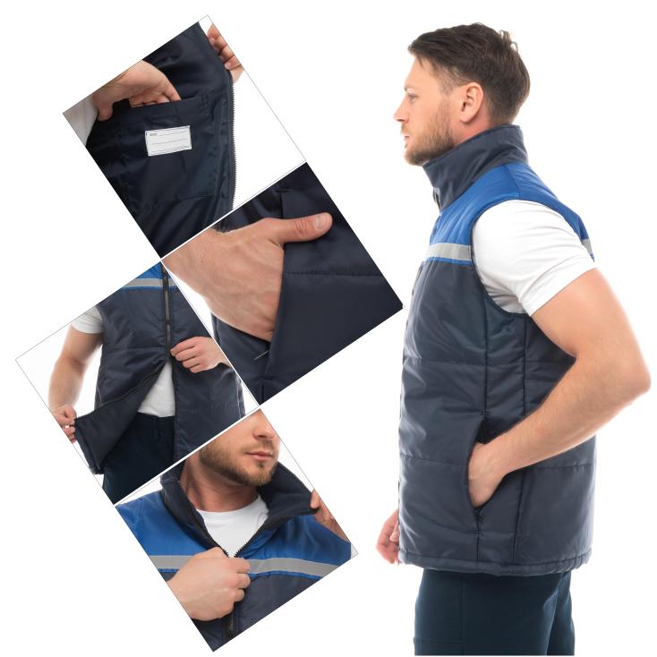Утепленный жилет «Мастер» – это практичное решение для работы и отдыха в холодный сезон. Он выполнен в темно-синем цвете с контрастными васильковыми вставками, подчеркивающими современный стиль. Внешняя ткань прочная, устойчивая к влаге и истиранию, а качественный утеплитель удерживает тепло и сохраняет комфорт. Жилет имеет прямой крой и удобную посадку, позволяя свободно двигаться и выполнять любые задачи. Высокий воротник защищает шею от холода, а центральная застежка-молния с ветрозащитной планкой предотвращает попадание ветра внутрь. Просторные карманы делают жилет функциональным, обеспечивая хранение инструментов или личных вещей. Его можно носить поверх толстовки, свитера или даже куртки, создавая многослойную защиту от холода. Размер 104–108/170–188 ориентирован на мужчин средней и крупной комплекции, которым важно совместить комфорт, удобство и практичность. Такой жилет незаменим для строителей, рабочих и любителей активного отдыха. «Мастер» станет надежным спутником в холодное время, помогая сохранить тепло и свободу движений.