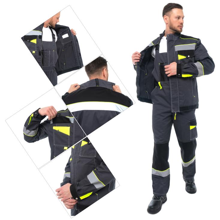 Костюм Корвет куртка, п/комб темно-серый с черным и лимонным СОП р.104-108/170-176
