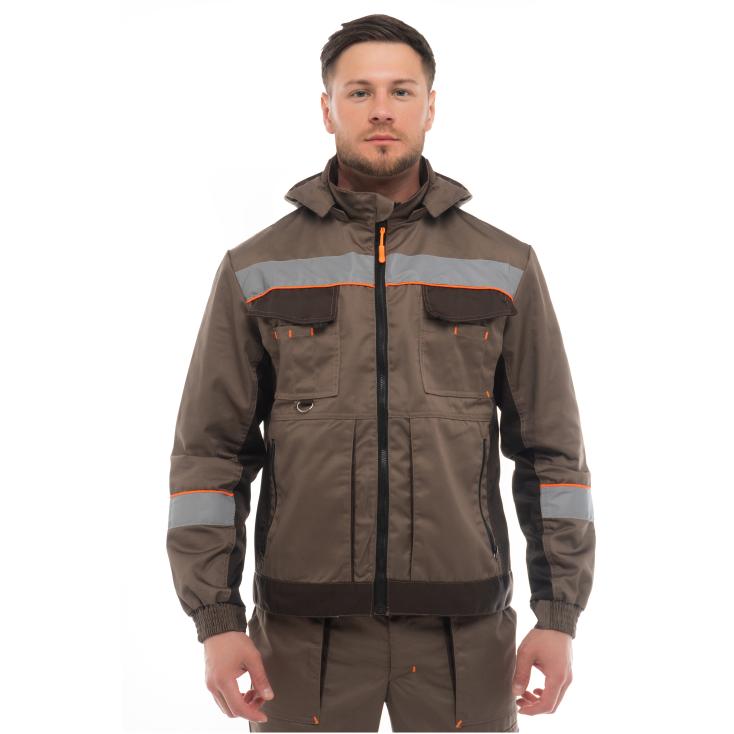 Костюм Оптимал куртка, п/комб коричневый с бежевым СОП р.96-100/182-188