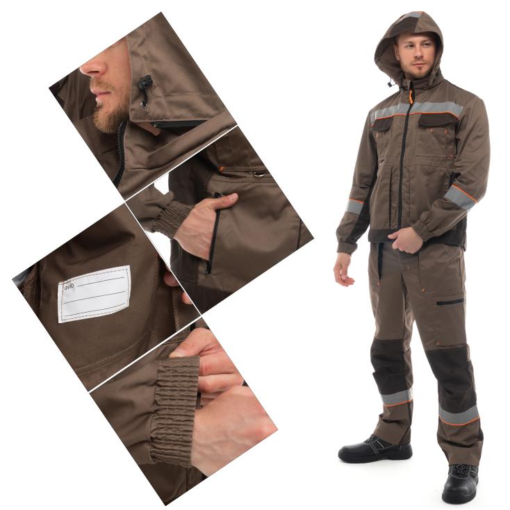 Мужской костюм «Берген» в размере 96–100/170–176 — это гармоничное сочетание современного стиля и практичности, созданное для тех, кто ценит удобство и презентабельный внешний вид в работе. Цветовая гамма комплекта построена на теплых контрастах: основной бежевый оттенок выглядит сдержанно и универсально, а темно-коричневые вставки подчеркивают линии силуэта, придавая образу благородство и солидность. Куртка выполнена с учетом анатомических особенностей фигуры, застегивается на прочную молнию, закрытую планкой, и снабжена вместительными карманами для хранения необходимых мелочей. Манжеты регулируются, создавая дополнительный комфорт и защиту от ветра и пыли. Брюки дополнены усиленными коленными зонами, что особенно удобно при активной работе, а также практичными карманами для инструментов. Материал изделия устойчив к износу и стиркам, не выцветает и сохраняет форму. Размер 96–100/170–176 рассчитан на мужчин среднего роста, гарантируя свободу движений и правильную посадку без стеснения. Такой костюм отлично подойдет для работников сервисных служб, строителей и специалистов, которым важен баланс между комфортом и презентабельностью. «Берген» помогает чувствовать уверенность, выглядеть достойно и работать с максимальной продуктивностью.