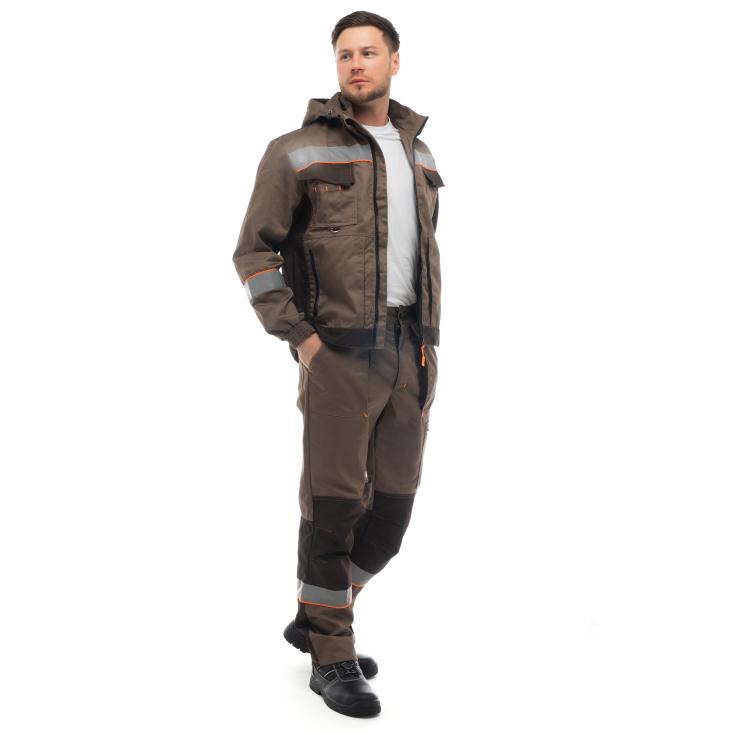 Костюм Оптимал куртка, п/комб коричневый с бежевым СОП р.96-100/170-176
