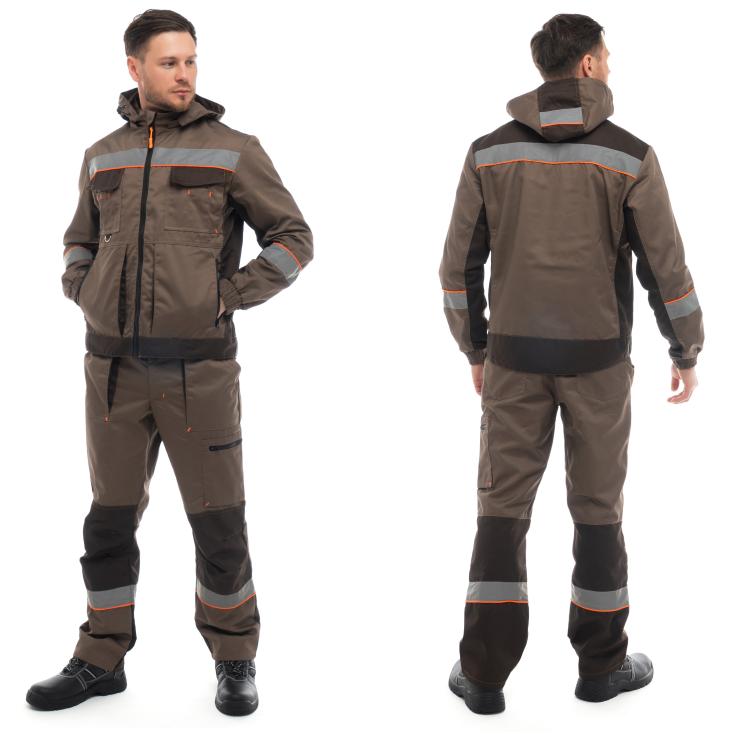Костюм Оптимал куртка, п/комб коричневый с бежевым СОП р.96-100/170-176