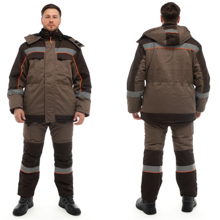 Костюм утепленный мужской Берген куртка, брюки бежевый с темно-коричневым р.96-100/170-176