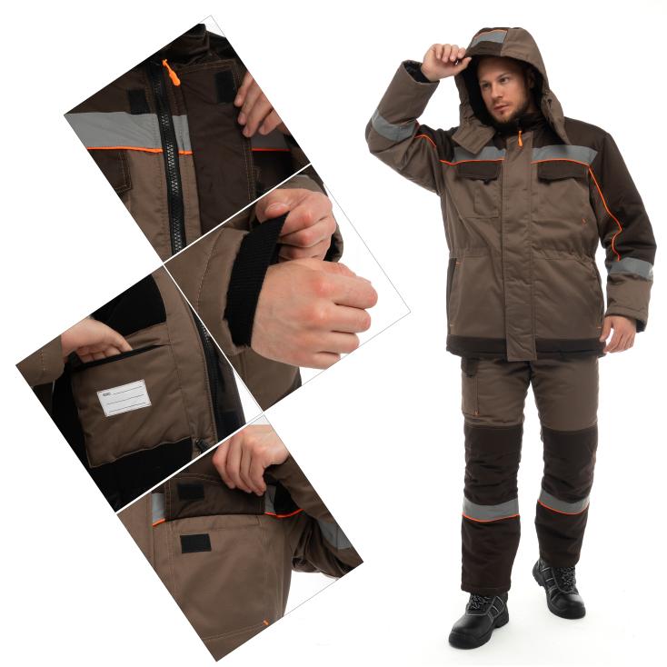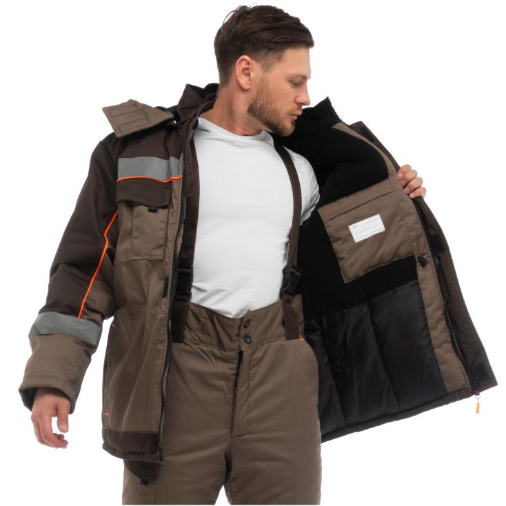Костюм утепленный мужской Берген куртка, брюки бежевый с темно-коричневым р.112-116/170-176