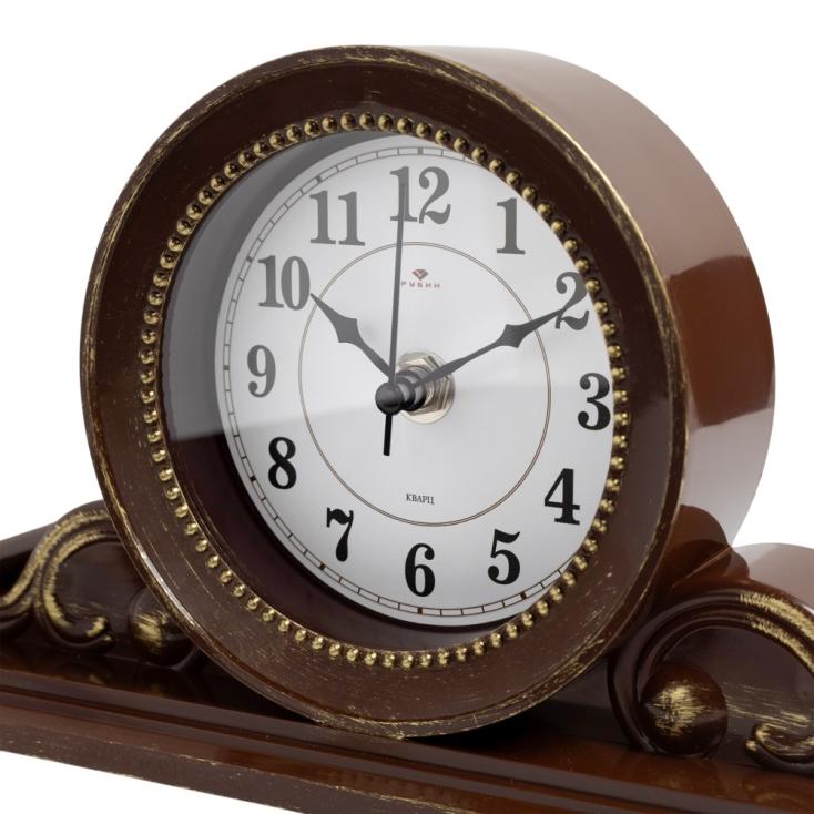 Настольные часы «Классика» размером 26х14 см в цвете коричневый с золотом – это изысканное дополнение интерьера, которое сразу привлекает внимание гармонией традиционных форм и богатой цветовой палитрой. Коричневый оттенок корпуса подчеркивает естественное тепло древесных тонов, а золотистые элементы создают эффект благородного сияния, словно напоминая о старинных антикварных моделях. Их дизайн вдохновлён атмосферой классических гостиных и кабинетов, где время воспринималось как особая ценность, а каждая деталь интерьера имела свою историю. Часы станут эмоциональным акцентом, придавая помещению атмосферу уюта и респектабельности. Циферблат выполнен с чёткой разметкой, благодаря чему показания легко читаются даже на расстоянии, а стрелки плавно движутся, создавая ощущение спокойного ритма. Такие часы органично впишутся в гостиную, библиотеку или кабинет, а также прекрасно подойдут для спальни, если хочется добавить нотку солидности. Рекомендуется ставить их на комод, каминную полку или письменный стол, где они смогут стать центром внимания. Эти часы не только помогают следить за временем, но и создают настроение размеренности, словно возвращая нас к классике, где ценили традиции и детали. Прекрасный выбор для тех, кто хочет купить стильные настольные часы, которые подчеркнут характер интерьера и станут его изюминкой.
