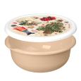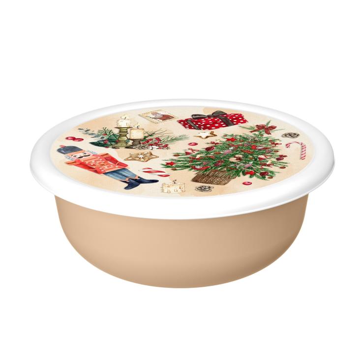 Миска круглая Modena "Игрушки" объёмом 2,1 литра в мягком бежевом оттенке — это удачное сочетание уюта, практичности и зимнего очарования. Украшенная милым праздничным принтом из коллекции "Игрушки", она моментально создаёт настроение тепла и домашнего уюта. Объём 2,1 литра делает её универсальной для сервировки салатов, гарниров, закусок или приготовления теста. Миска выполнена из безопасного пищевого пластика, не выделяющего запахов и не взаимодействующего с продуктами. Удобная крышка плотно закрывается, сохраняя свежесть содержимого и предотвращая проливание. Её можно использовать как дома, так и брать с собой в дорогу, на пикник или в офис. Бежевый цвет отлично сочетается с любой кухонной утварью и особенно приятно смотрится в интерьере в стиле прованс, сканди, кантри. Миска не скользит по поверхности, устойчива к деформации, легко моется вручную или в посудомоечной машине. Её праздничное оформление превращает даже обычный обед в атмосферное застолье. А благодаря тому, что крышка позволяет ставить миски друг на друга, вы легко организуете пространство на полках.