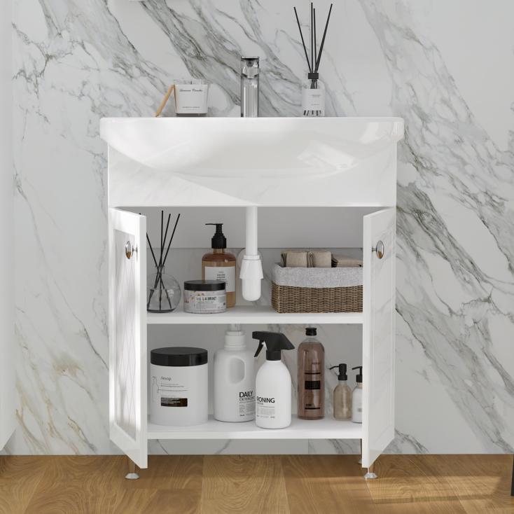 Тумба Volna Milena 70 под раковину Балтика 70 — это гармоничное сочетание утончённого дизайна, функциональности и качества, которое способно превратить обычную ванную комнату в пространство стиля и уюта. Элегантный внешний вид тумбы подчёркнут лаконичными линиями, сдержанным цветом и гладкой глянцевой поверхностью фасада. Она словно парит в интерьере, придавая всей обстановке лёгкость и современность. Габариты тумбы идеально подогнаны под стандартную раковину Балтика 70, что делает установку простой и удобной. Модель оснащена двумя выдвижными ящиками с системой мягкого закрывания — вам не придётся хлопать дверцами, ведь всё работает бесшумно и плавно. Вместительные ящики позволяют разместить всё необходимое: бытовую химию, полотенца, косметику, аксессуары. Корпус выполнен из влагостойкого ЛДСП с защитным покрытием, которое не боится влаги, температурных перепадов и механических повреждений — это особенно важно для ванных комнат с повышенной влажностью. Цвет тумбы — универсальный белый, легко сочетается с плиткой, сантехникой и текстилем любого оттенка. Фасады украшены стильными ручками, выполненными в минималистичном дизайне. Тумба устанавливается на регулируемые ножки или может быть подвешена на стену, что облегчает уборку и визуально разгружает пространство. Благодаря своему продуманному дизайну и качественным материалам, тумба под раковину Volna Milena 70 — это не просто мебель, а элемент, создающий ощущение порядка, чистоты и эстетики в ванной. Она подойдёт как для городской квартиры, так и для загородного дома. Это идеальное решение для тех, кто ценит комфорт, лаконичный стиль и практичность.