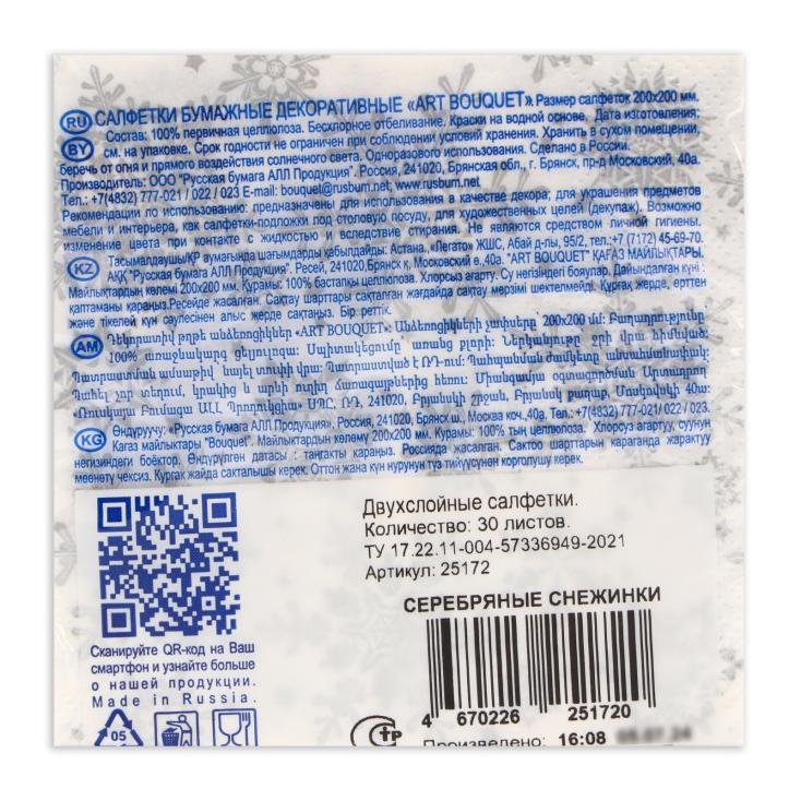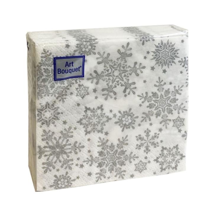 Салфетки бумажные Серебряные снежинки 20х20 см 2-х слойные 30 шт