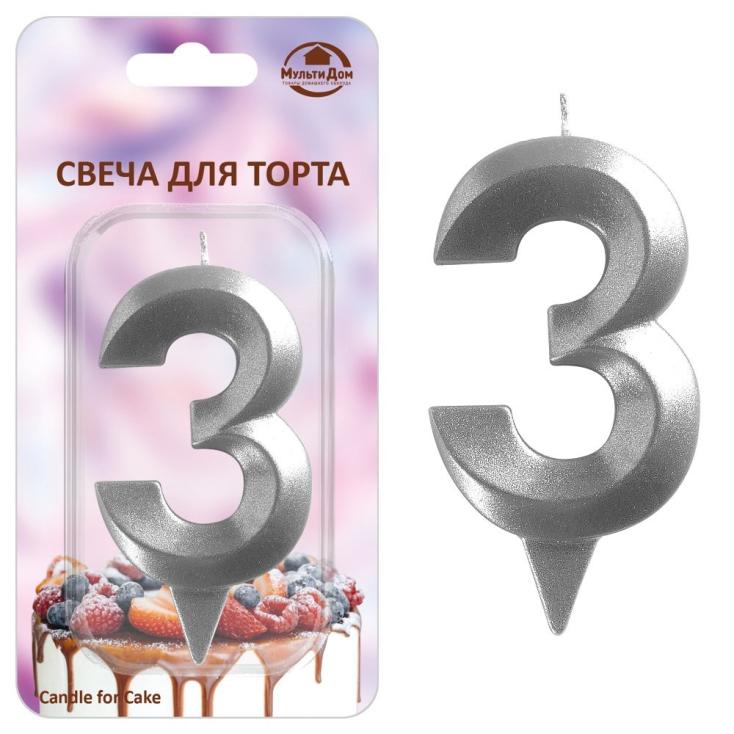 Свеча для торта Цифра 3 хром Грань