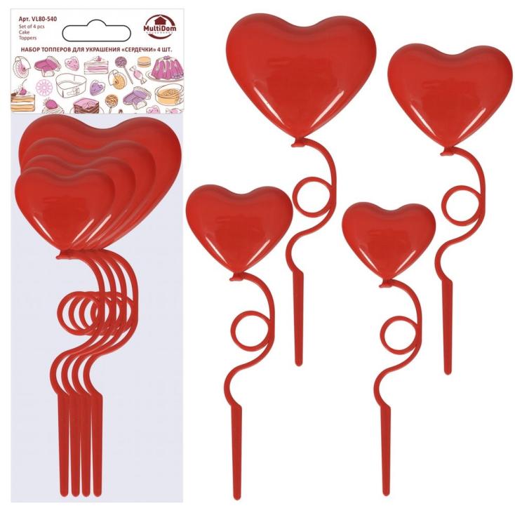 Топпер для украшения Сердечки 7,5х16 см, 6,5х15 см, 5,5х14 см, 4,5х13 см 4 шт VL80-540