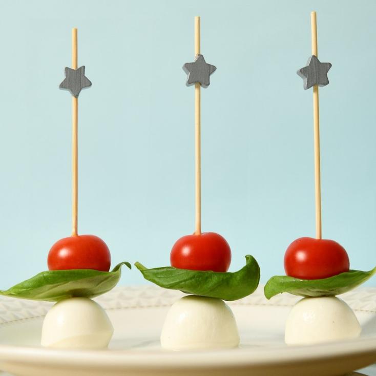 Шпажки для канапе Звезды Серебро 12 см 24 шт VL80-592 – аксессуар, который сделает подачу блюд по-настоящему праздничной. Серебристые звёзды на верхушках сияют при свете, создавая атмосферу торжества и веселья. Эти шпажки подходят для канапе, фруктов, сыров, мини-десертов и сладостей. Длина 12 см универсальна и удобна для подачи, а набор из 24 штук позволяет украсить стол для всей компании. Изготовленные из качественного материала, они надёжные и безопасные. Серебристый дизайн особенно гармонично смотрится на новогодних вечеринках, днях рождения или свадебных банкетах. С такими шпажками ваш стол будет выглядеть стильно и эффектно.