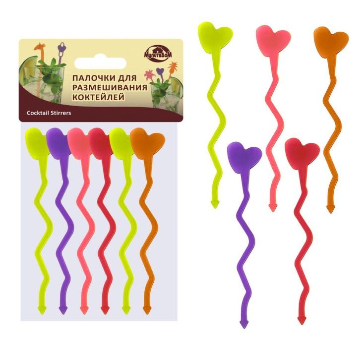 Палочки для размешивания коктейлей Сердечко 17,6 см 6 шт МТ76-105