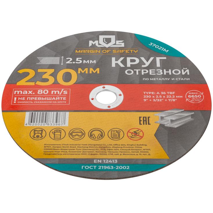 Диск отрезной по металлу 230х2,5х22,2 мм MOS 37021М