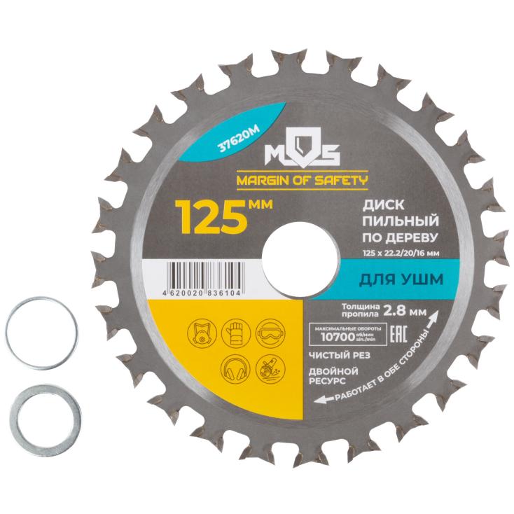 Диск пильный по дереву 125x22,2 мм 24 зуба 2 кольца 22,2/20 мм и 22,2/16 мм MOS 37620М
