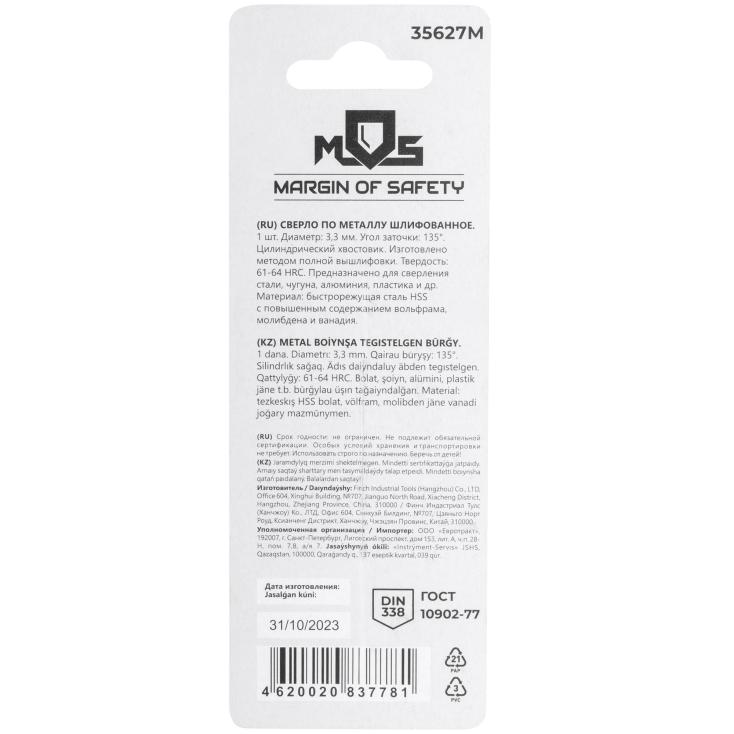 Сверло по металлу HSS 3,3х65 мм MOS 35627М