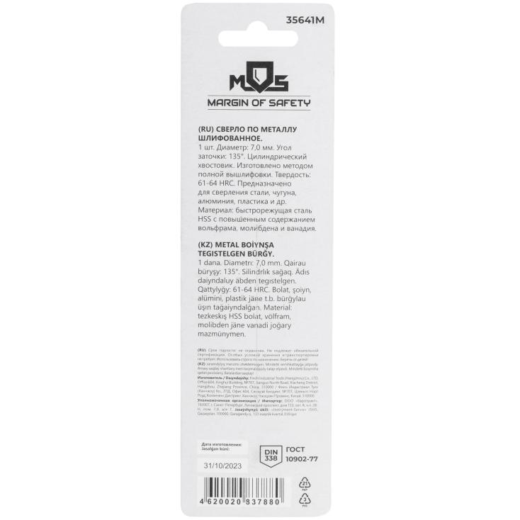 Сверло по металлу HSS 7х109 мм MOS 35641М