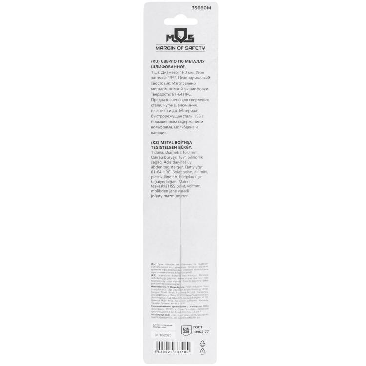 Сверло по металлу HSS 16х178 мм MOS 35660М