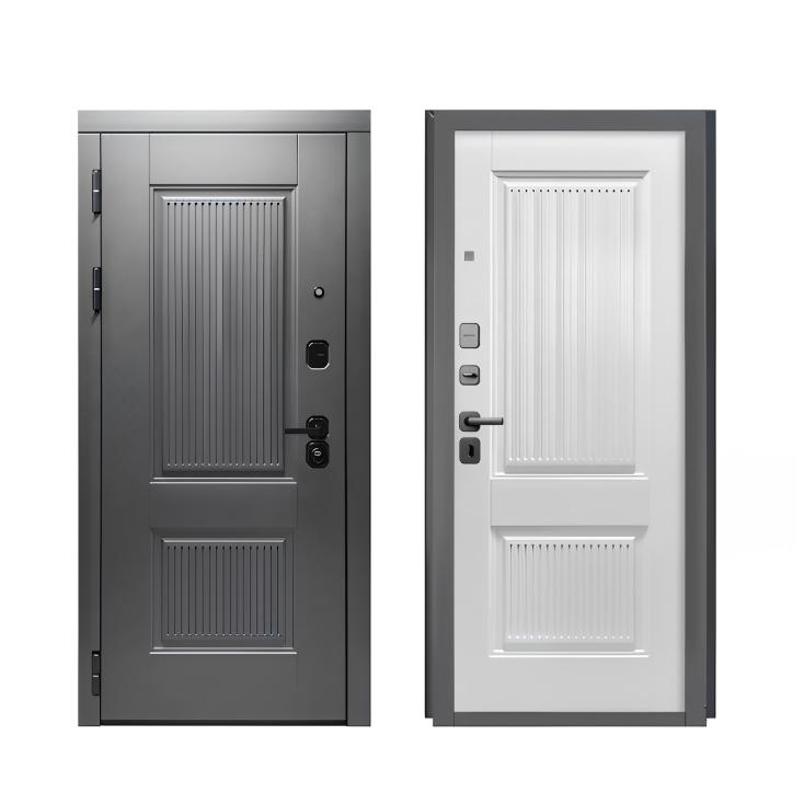 ОписаниеДверь металл Рона бетон графит Бетон снежный Черный муар 860х2050 мм L — стильная и современная входная дверь, которая привлекает внимание оригинальным дизайном. Сочетание графитового бетона и светлого оттенка Бетон снежный создает контраст, подчеркиваемый черным муаровым покрытием. Такая дверь идеально вписывается в современные интерьеры, минимализм и стиль лофт. Размер 860х2050 мм подходит для стандартного проема, а левое открывание удобно для многих квартир и домов. Полотно изготовлено из прочного металла, дополнено ребрами жесткости и утеплителем, что обеспечивает надежную защиту от холода, влаги и шума. Замковая система выполнена с учетом современных стандартов безопасности. Порошковое покрытие не только украшает поверхность, но и защищает её от механических повреждений и воздействия окружающей среды. Дверь Рона бетон графит Бетон снежный Черный муар — это гармония дизайна и надежности, которая подчеркнет ваш вкус и станет настоящим украшением входной зоны. Выбирая эту модель, вы получаете не только защиту, но и стильное решение для вашего дома.