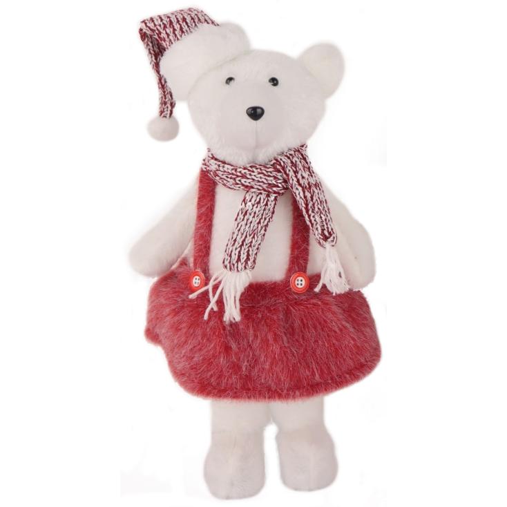 Изделие декоративное Мишка девочка стоящая 22x18x54 см белый/красный