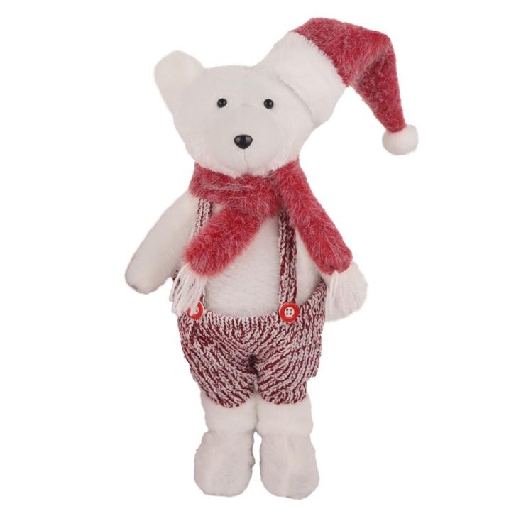 Мишка мальчик стоящий 22x18x54 см белый/красный — трогательный и праздничный элемент декора, который создаёт атмосферу доброты и тепла. Белый мех, яркий красный костюм и забавный шарфик придают фигурке живость и очарование. Высота 54 см делает мишку заметным и выразительным украшением: он отлично смотрится рядом с ёлкой, на полу или у входа в дом. Прочные материалы и качественное исполнение обеспечивают долговечность и устойчивость. Мишка мальчик — это символ детства, заботы и праздничного настроения. В паре с мишкой-девочкой он создаст уютную зимнюю композицию, которая наполнит дом теплом и добрыми эмоциями. Пусть этот забавный герой принесёт улыбки и ощущение волшебства в каждый уголок!