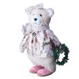 Фигура декоративная Мишка с еловым венком 16х13х26 см розовый/золото
