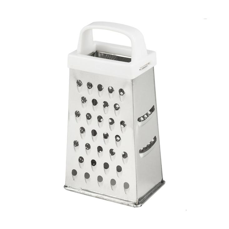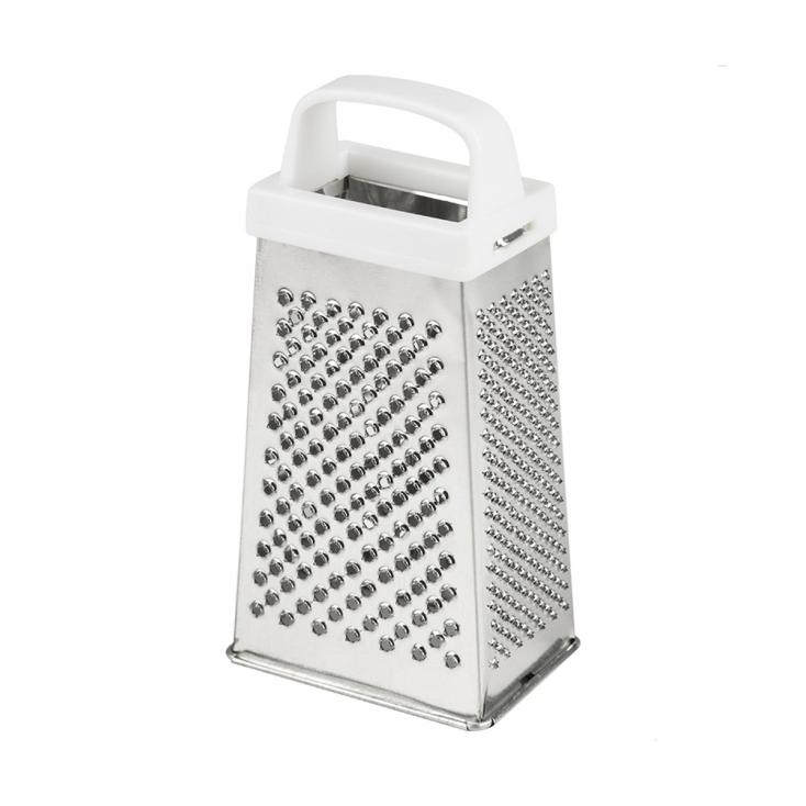 Терка четырехгранная Candore — надежный помощник на вашей кухне, сочетающий простоту, функциональность и долговечность. Выполненная из высококачественной нержавеющей стали, она сохраняет остроту режущих кромок даже после сотен применений. Четыре грани предназначены для разных видов нарезки и измельчения: крупная и мелкая тёрка, слайсер для овощей и сторона для пюреобразной структуры продуктов. Такая универсальность делает её идеальной для приготовления салатов, гарниров, запеканок и десертов. Удобная ручка обеспечивает прочный захват, а устойчивая база предотвращает скольжение. Стильный металлический блеск и компактные размеры позволяют легко хранить терку на кухне или подвесить на крючок. Терка Candore объединяет в себе удобство, качество и эстетичность — незаменимая вещь для каждой хозяйки и шефа. Создавайте кулинарные шедевры без лишних усилий с теркой Candore — практично, удобно и красиво!