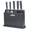 - Состав набора 5 ножей; 1 подставка; 4 разделочных доски