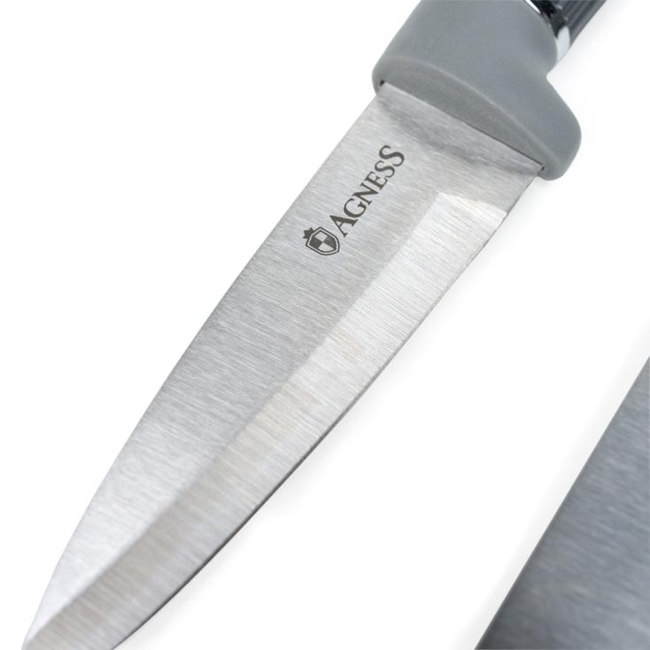 Стильный набор ножей Agness 10 предметов 5 ножей, 4 доски и подставка, цвет черно-серый 671-215 — незаменимый аксессуар для любой кухни, где ценят порядок, практичность и эстетику. В комплект входят пять острых ножей из высококачественной нержавеющей стали, четыре удобные разделочные доски и устойчивая подставка. Лезвия ножей обеспечивают идеальную остроту и лёгкость резки, а эргономичные ручки с противоскользящим покрытием делают работу безопасной и комфортной. Разделочные доски выполнены из прочного, влагостойкого материала, который не впитывает запахи и легко очищается. Компактная подставка в стильной чёрно-серой гамме не только экономит место, но и придаёт кухне современный вид. Этот набор сочетает в себе продуманный дизайн и функциональность, обеспечивая удобство при ежедневном приготовлении блюд. Agness 671-215 — это гармония стиля и практичности: идеальный подарок для тех, кто любит готовить и ценит комфорт в каждой детали.