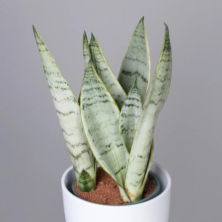 Сансевиерия Уайт Тайгер d12 см — стильное и эффектное растение с вертикальными листьями насыщенно-зелёного цвета, украшенными контрастными светлыми полосами. Благодаря оригинальной окраске, напоминающей тигровый узор, растение смотрится динамично и современно, идеально вписываясь в интерьер в стиле лофт, модерн или минимализм. Диаметр горшка 12 см позволяет разместить сансевиерию на подоконнике, полке или в напольном кашпо. Она неприхотлива, выдерживает полутень, сухой воздух и редкий полив. Сансевиерия очищает воздух, выделяет кислород ночью и создаёт ощущение свежести. Сансевиерия Уайт Тайгер — воплощение природной силы, стойкости и гармонии в вашем доме!