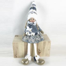 Изделие декоративное Девочка сидящая 16x10x53 см голубо-серый/белый