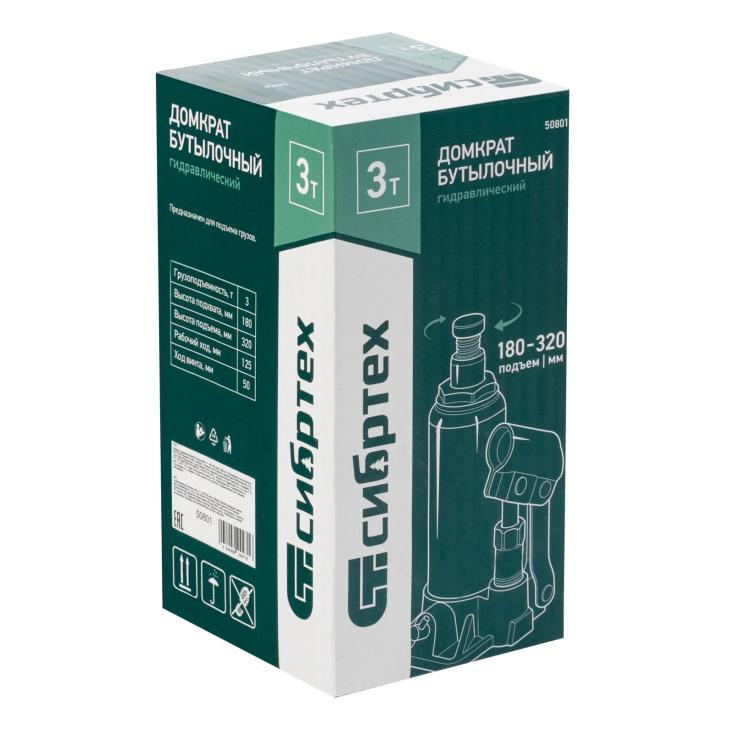 Домкрат гидравлический бутылочный 3 т 180-320 мм Сибртех