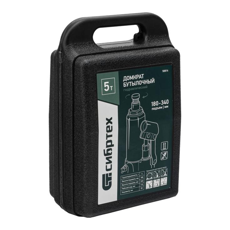 Домкрат гидравлический бутылочный 5 т 180-340 мм в пласт. кейсе Сибртех
