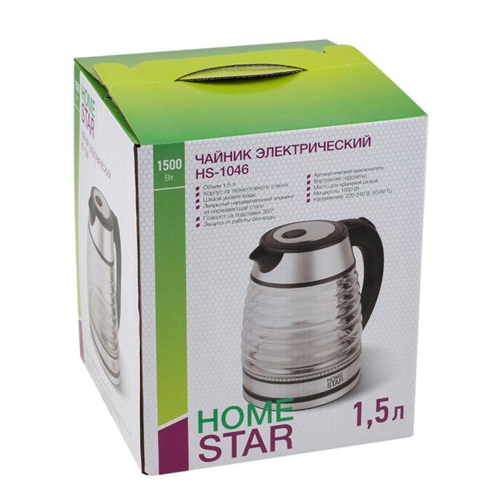 Чайник электрический Homestar HS-1046 1500 Вт 1,5 л стекло, черный (12)